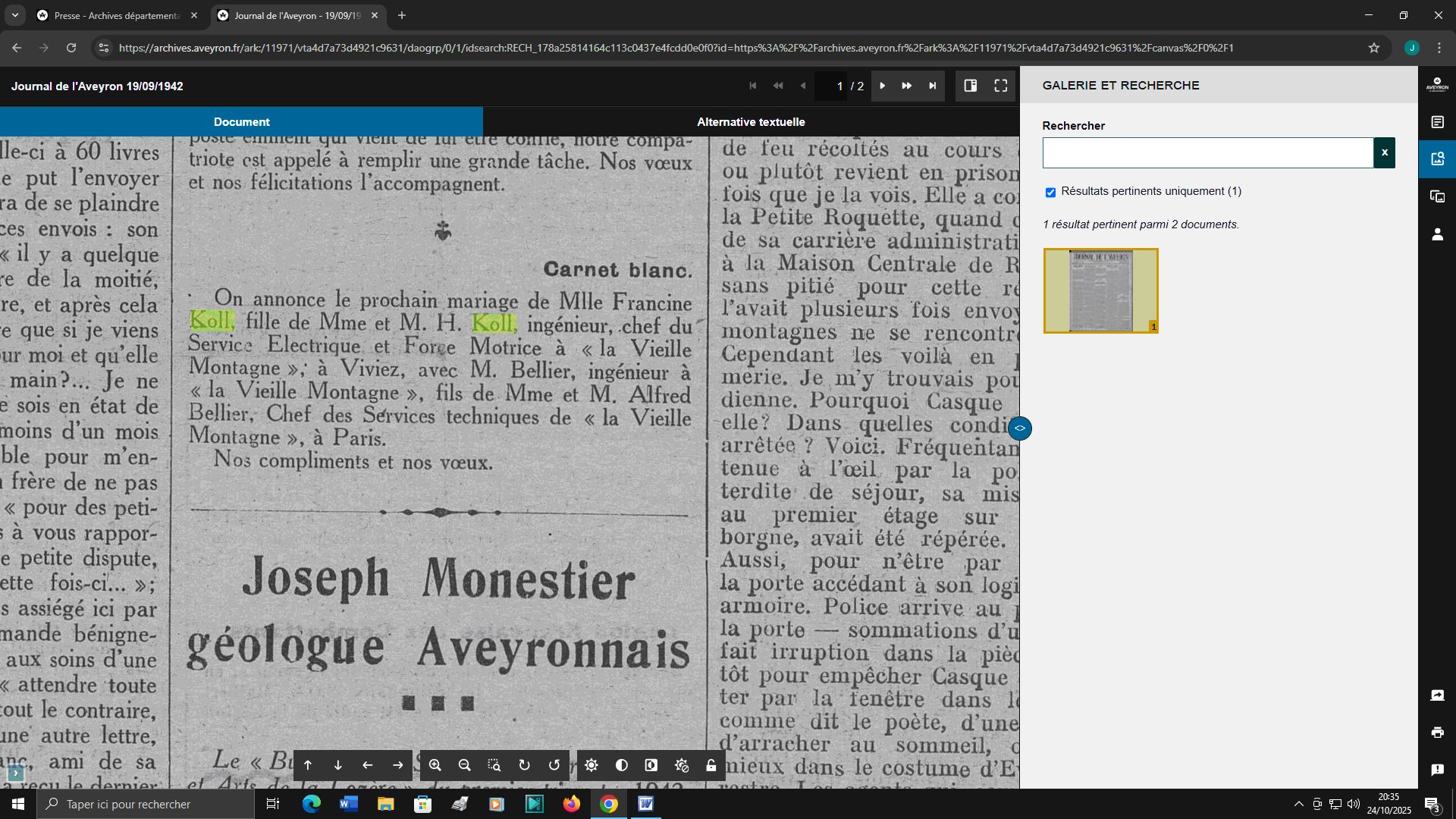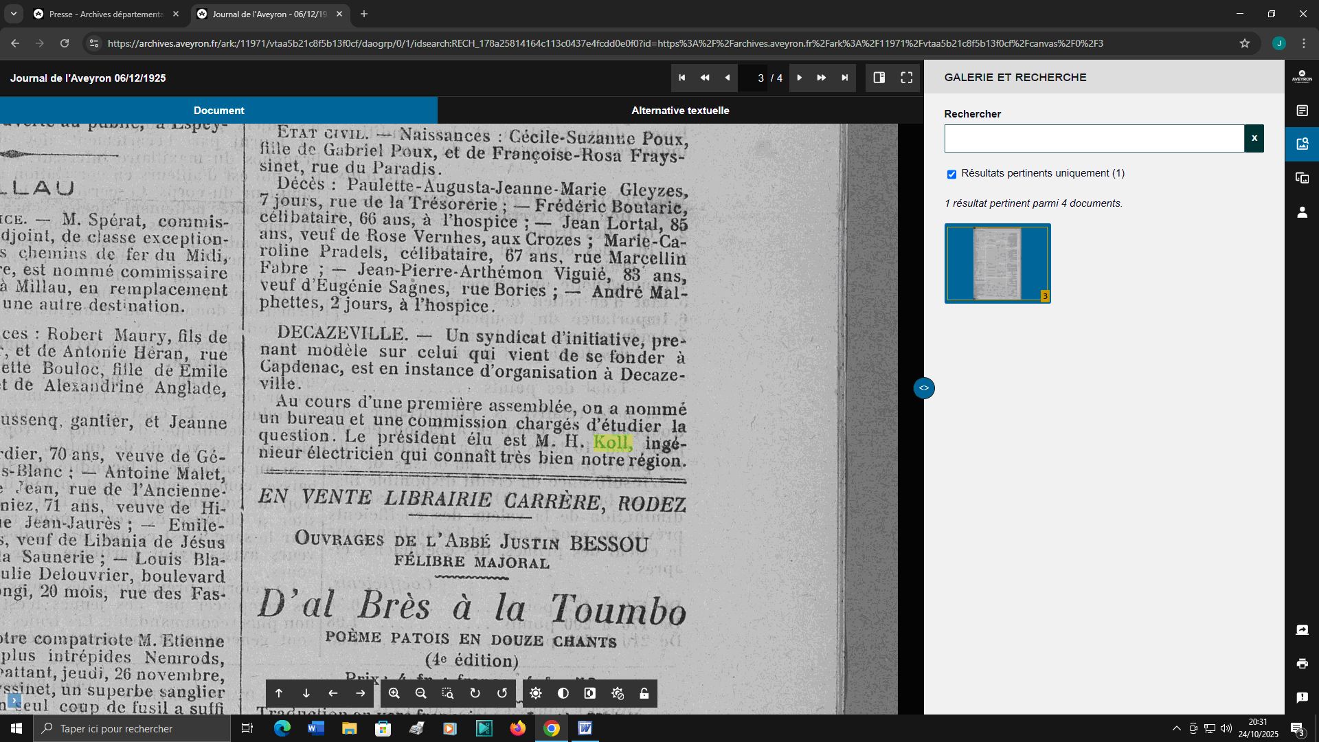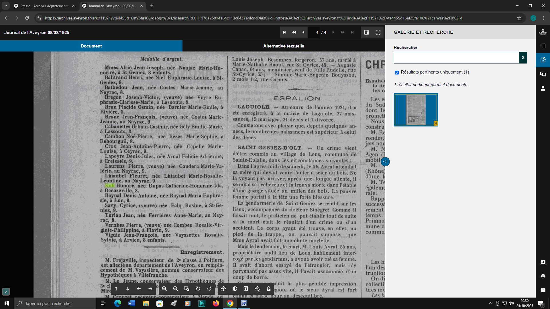 nom dans nos journaux locaux, Le Narrateur ou Le Journal de l'Aveyron,
