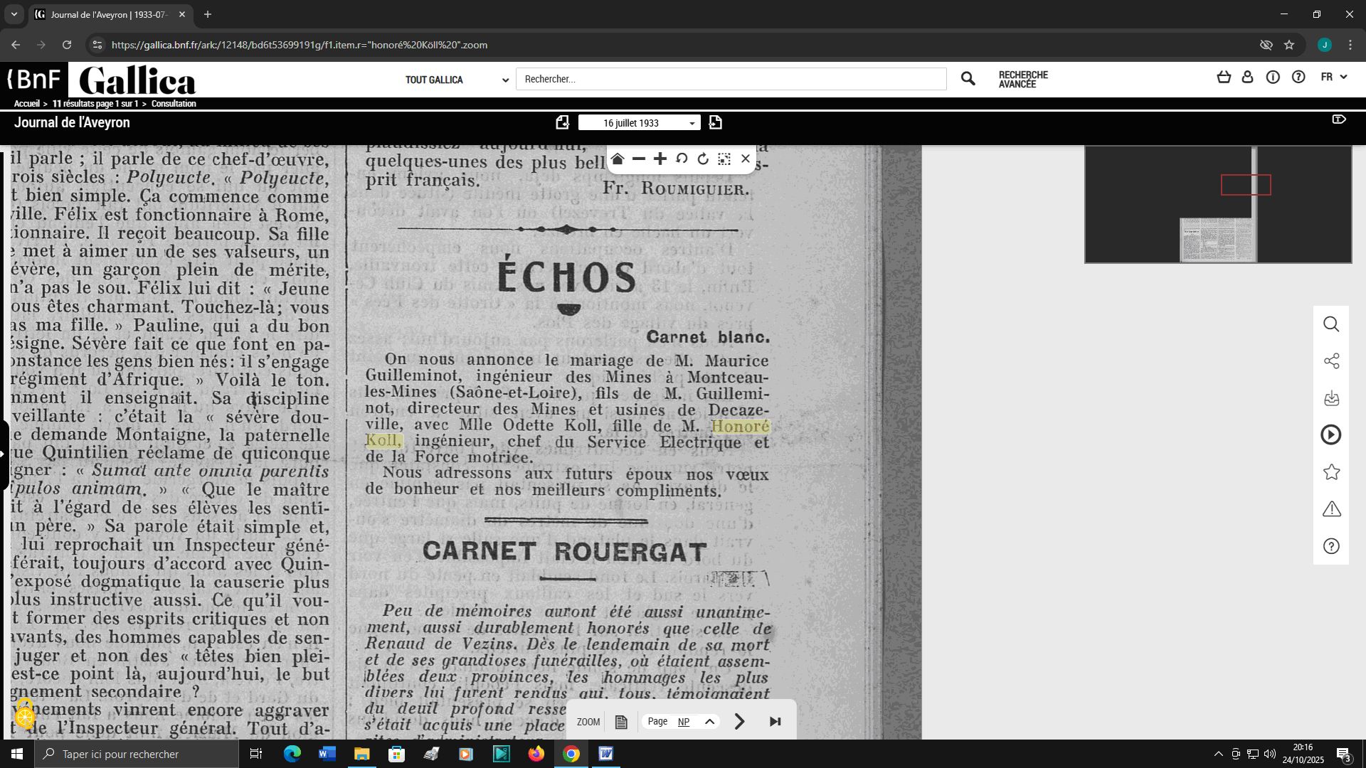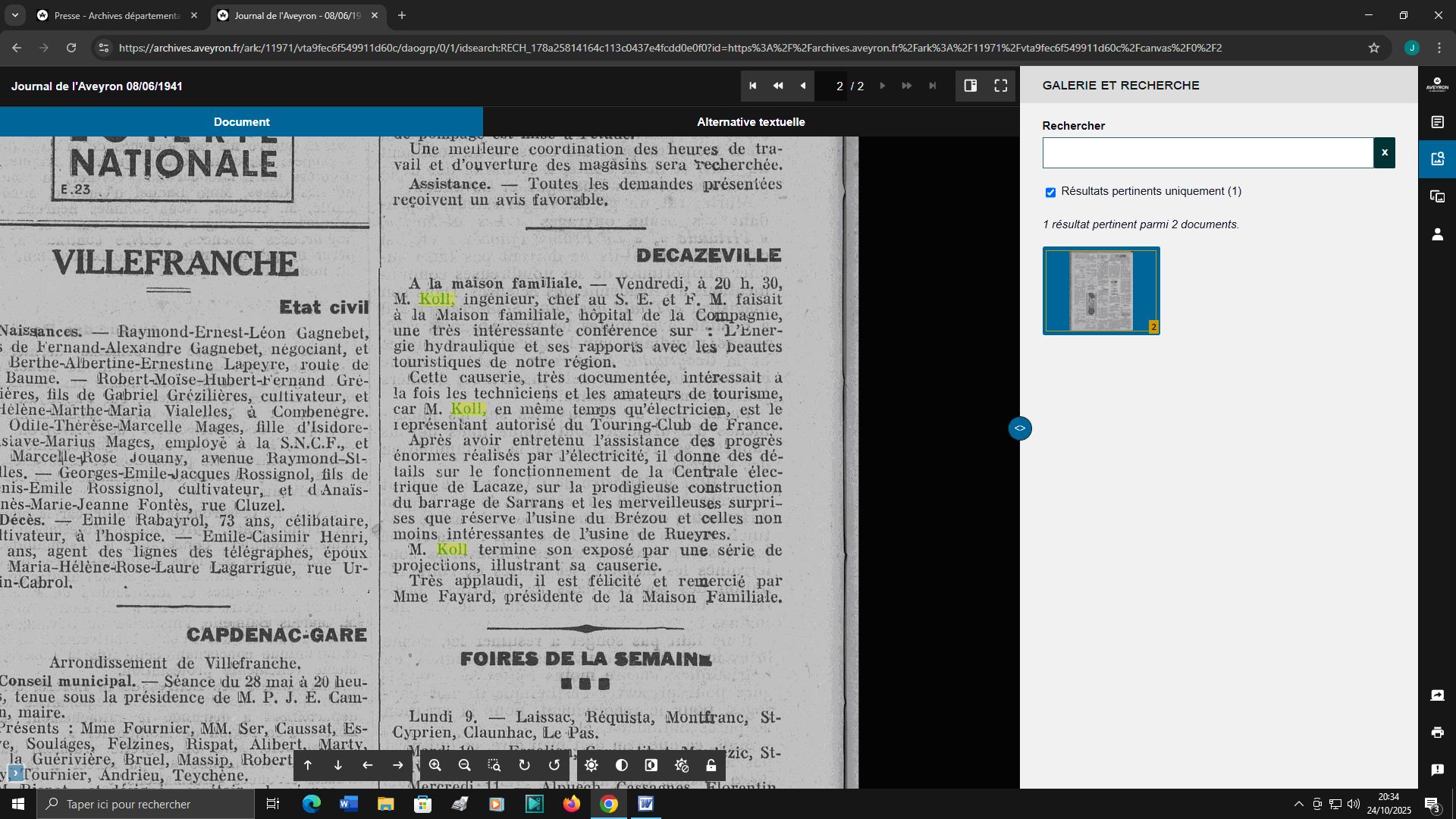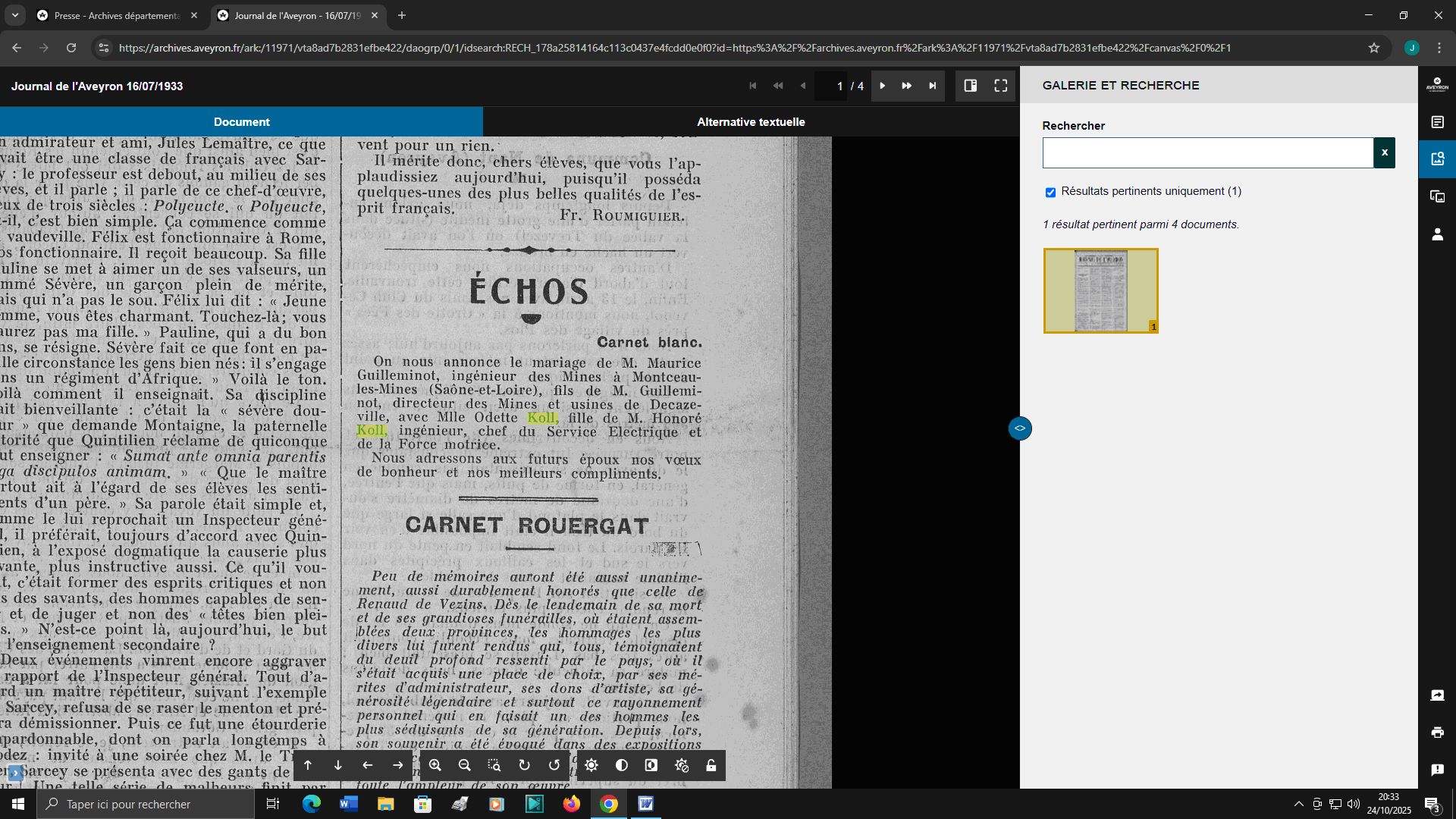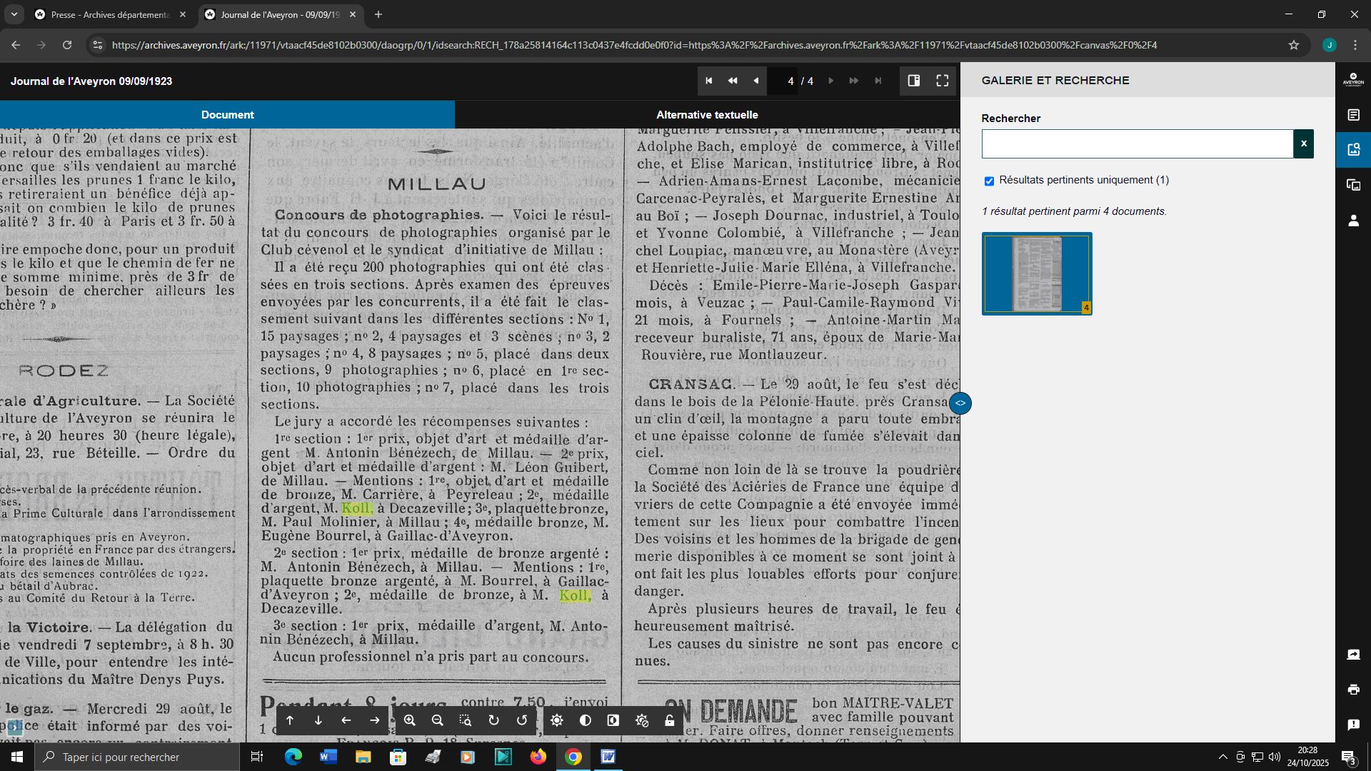 nom dans nos journaux locaux, Le Narrateur ou Le Journal de l'Aveyron,