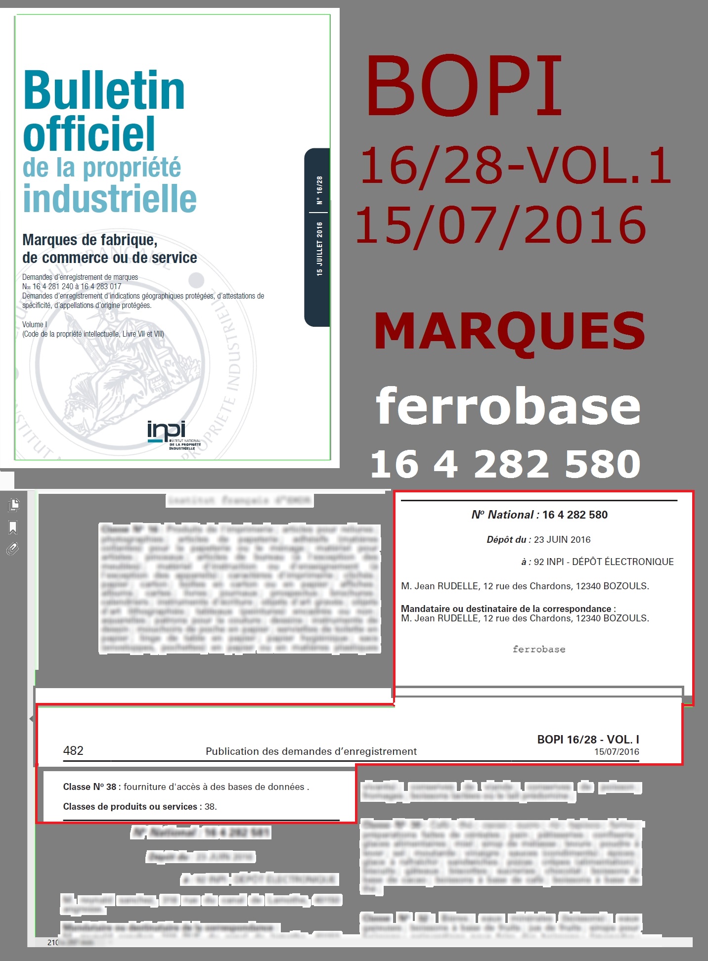 officiel de la propriété industrielle, n° 16/28-vol1, le 15/07/2016