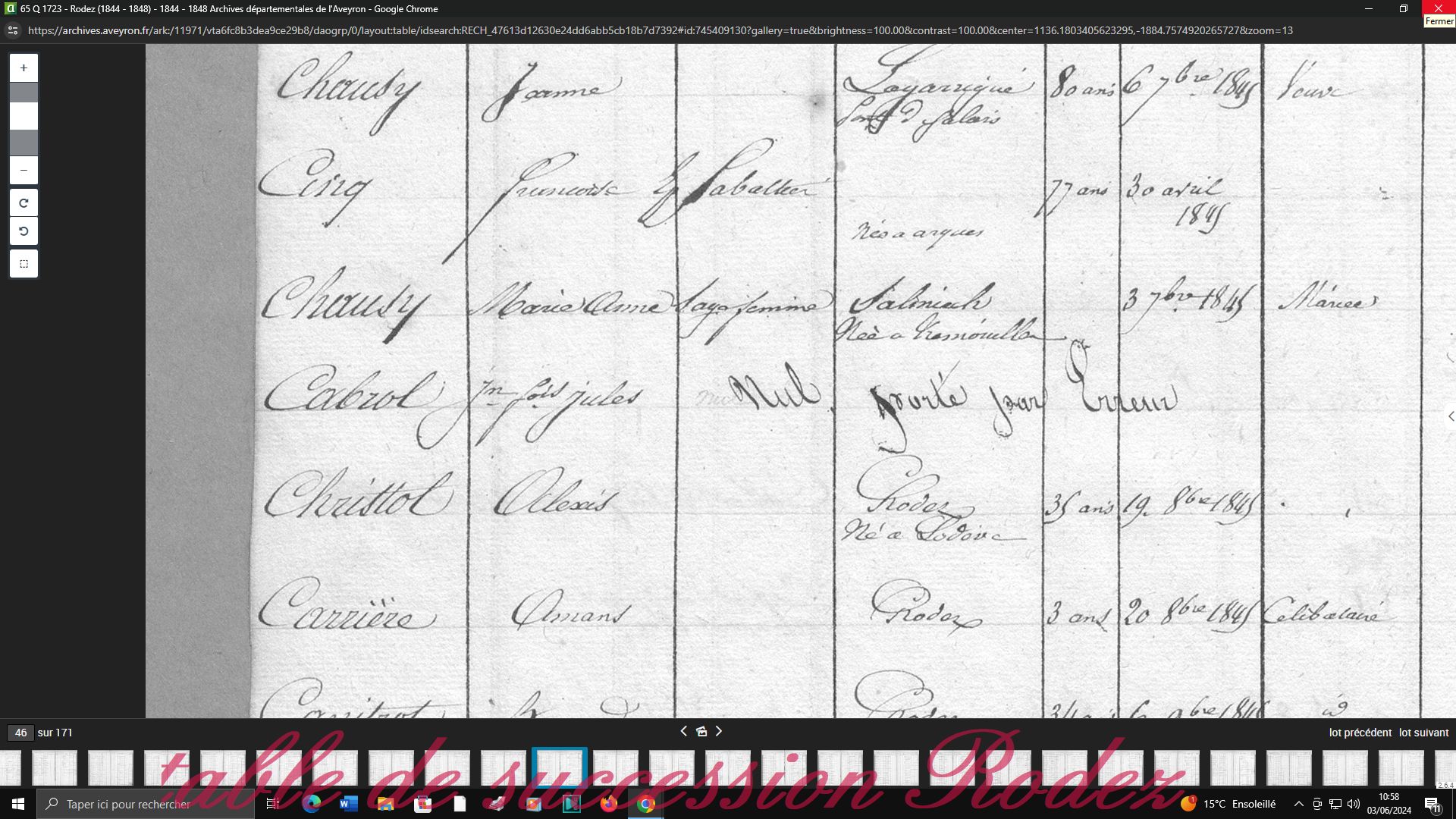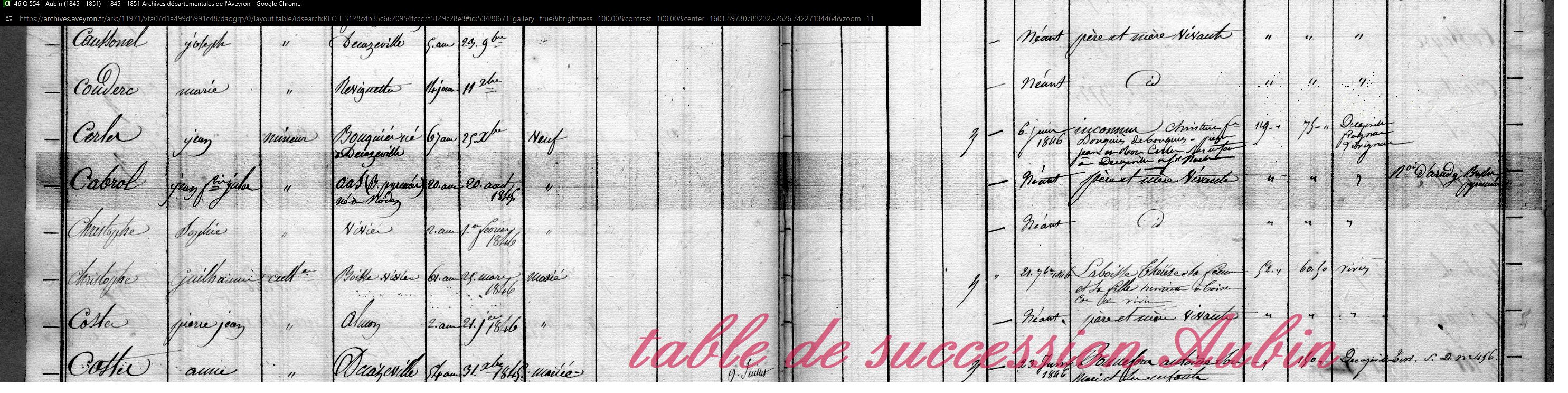 dans deux registres, Rodez et Aubin. Pour Rodez, il s'agit d'une
