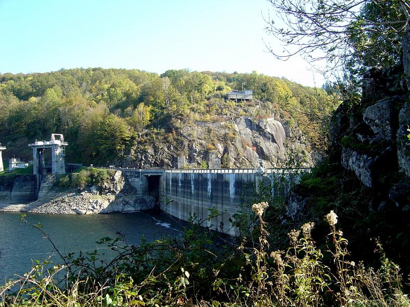 transporteur aérien de ciment; Sarrans. La gare d ' arrivée : au centre haut de l ' image